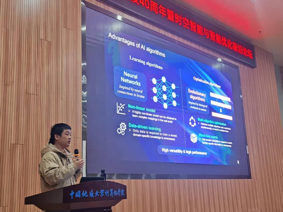 本次报告会邀请了来自中南大学吴立新教授、北京师范大学董卫华教授、武汉大学吴华意教授、华中科技大学吴松教授、江苏理工学院邢立宁教授、华中科技大学刘禹良教授、安徽大学田野教授、武汉大学王峰教授、武汉科技大学唐秋华教授、彭琨琨特任教授及华中科技大学何强教授等多位国内外知名学者,先后围绕灾害遥感应急服务、地理空间智能计算、时空大模型、云原生系统、智能规划与优化、多模态模型、人工智能算法自动设计、生成式模型驱动的动态多目标进化优化、AI赋能的制造过程优化、炼钢—精炼—连铸智能调度方法及算力网络赋能端侧模型训练等前沿议题,系统分享最新研究成果,深入探讨时空智能与智能优化领域在“大模型+场景”深度融合背景下的技术路径与创新范式。