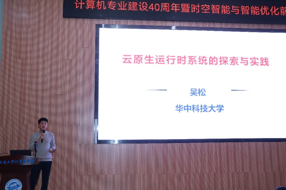 华中科技大学吴松教授作了题为《云原生运行时系统探索与实践》的报告,系统介绍了团队针对云原生运行时系统面临的启动慢、隔离弱和扩展差三大难题的研究成果,提升了云原生运行时系统的启动速度和运算性能。