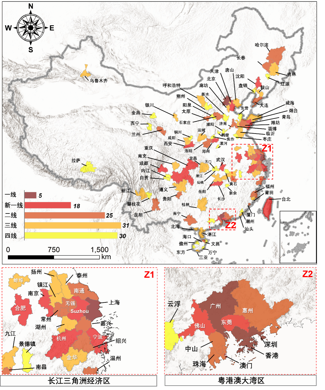 图2:制图区域-本研究在全国109个城市绘制了1.1亿栋建筑的功能图