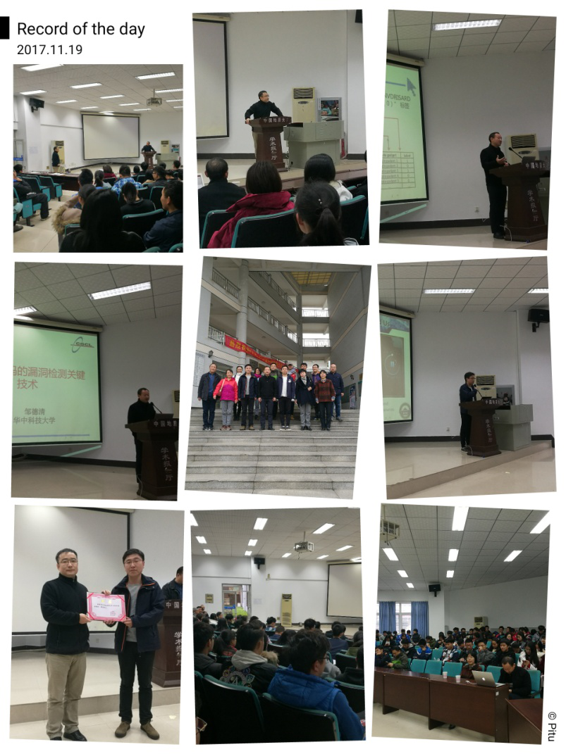 (通讯员:章丽平)11月19日,由世界杯体育官方网站信息安全系主办的网络空间安全及大数据研讨会在北一楼学术报告厅胜利召开。分别来自华中科技大学、武汉大学、海军工程大学、国家网络空间安全发展创新中心的邹德清教授、王骞教授、马良荔教授和王得金研究员等四位专家为广大师生们带来了精彩的报告,整个报告厅座无虚席,充满了浓厚的科研气氛。