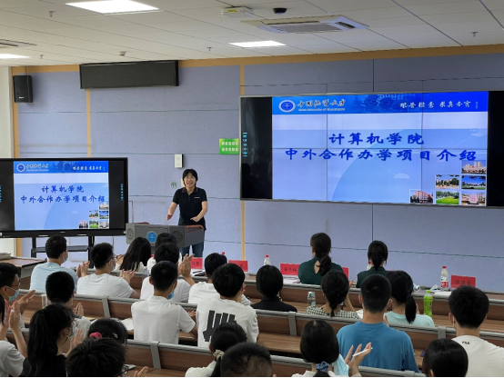 (通讯员:张园园)9月6日下午,计算机科学与技术中外合作办学项目2021级新生见面会在南望山校区教学综合楼C107教室隆重举行。国际教育学院副院长范陆薇,世界杯副院长张冬梅、党委副书记傅苑、数据科学与大数据技术系党支部书记宋维静、国际合作办公室老师、2021级兼职辅导员沈晨及2021级合作办学专业全体新生参加会议,会议由国际合作办公室主任黄燕霞主持。