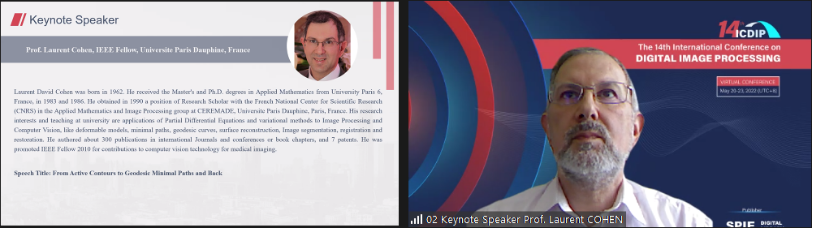 由中国地质大学(武汉)世界杯体育官方网站主办的第十四届数字图像处理国际会议(ICDIP 2022)于2022年5月20-23日成功举办线上会议。本次会议共有来自英国、法国、美国、日本、澳大利亚、希腊、印度、阿根廷等国以及中国香港,北京、上海、陕西、辽宁、浙江、湖北和湖南等地的27位专家陆续分享了他们在数字图像处理等领域的最新研究成果。国内外专家和学者围绕图像质量和图像安全、图像分类与算法、图像分割、光学成像和系统、数字图像处理与应用、三维模型与图像重建等16个主题,进行了广泛而深入的学术交流与研讨。