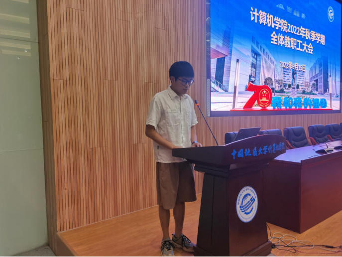 首先,李国昌介绍了学院今年新转入和新入职教师郑晓军、罗俊、刘星彦、黄晓辉、谭文博,以及从北京借调完毕回汉的江宝得老师,并代表学院对他们的加入和回归表示欢迎。黄晓辉作为代表发言,他表达了对学院多年来培养的感激之情,并表示一定要向各位前辈学习,努力工作,为国家的教育事业和科研工作作出贡献。