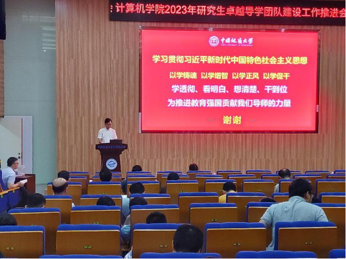 李国昌以“和谐导学关系 培育更多计科先锋——来自研究生导学团队主题教育工作会的思考”为题,领学了习近平关于研究生教育工作的重要指示精神和首届全国研究生导学思政论坛的会议精神,传达了研究生导学团队主题教育工作会议精神,分享了兄弟学院研究生导学团队建设的经验,对学院研究生导学团队建设提出了建议。