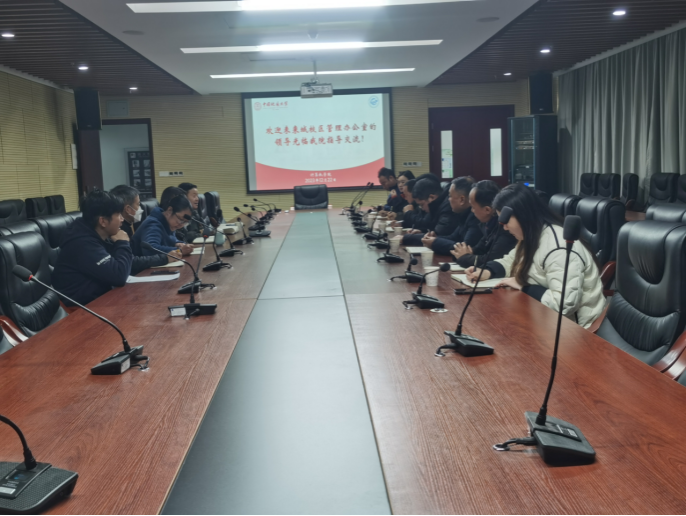 12月22日上午,未来城校区管理办公室(下称校区办)主任王文起,副主任马红祥、罗勋鹤、李雨竹,携相关科室负责人姜力维、杨叶、吴优、谢晓来世界杯调研交流。世界杯党委书记李国昌、副书记林小艳、办公室主任石剑峰、工会委员李程俊、纪委委员郭晓兰、研究生秘书郑晓军参加交流。