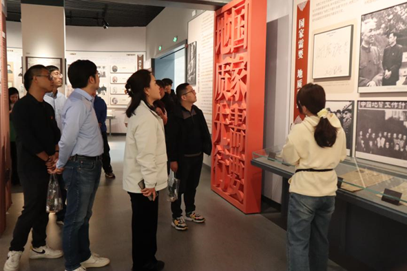 随后,一行人前往学校校史馆。在讲解员的带领下,大家从门厅、编年体展厅、党建专题展厅、大师专题展厅、登山专题展厅到党建厅,全方位、多角度地回顾了学校长达七十多年的办学发展史,在党建厅重温入党誓词。