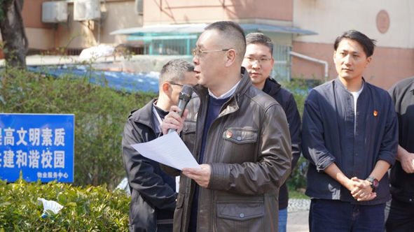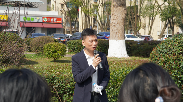 唐忠阳致辞。他欢迎金山集团来到学校。他说,在春意盎然的时节,大家齐聚地大,开展“党建联学,校企合作,共筑育人树”的活动,标志着迈出了深化校企合作,共育时代新人的重要一步。希望在校企双方共同努力下,在新时代背景下发挥校企双方优势,探索校企联合培养人才模式,助力学生全面发展,以植树节为契机校企双方种下共育的树苗,期待育人的果实茁壮成长,为实现中华民族伟大复兴的中国梦,培育更多有理想有担当的时代新人而奋斗。
