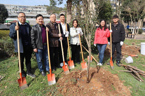 春回大地,万物复苏。为深入学习贯彻落实习近平新时代中国特色社会主义思想,践行“绿水青山就是金山银山”生态理念,探索中国地质大学“谋求人与自然和谐发展”的价值观。3月12日下午,在第46个植树节来临之际,中共武汉金山软件有限公司委员会、中共中国地质大学世界杯体育官方网站委员会、中共中国地质大学后勤保障部委员会共同开展“党建引领校企合作 厚植培养人才新绿”联学共建活动。学校党委副书记、纪委书记唐忠阳,世界杯体育官方网站党委书记李国昌,后勤保障部党委书记黄菊,金山软件党委书记、助理总经理张念,金山集团武汉总部总经理高宇峰,世界杯体育官方网站师生代表、金山集团代表共30余人参加。