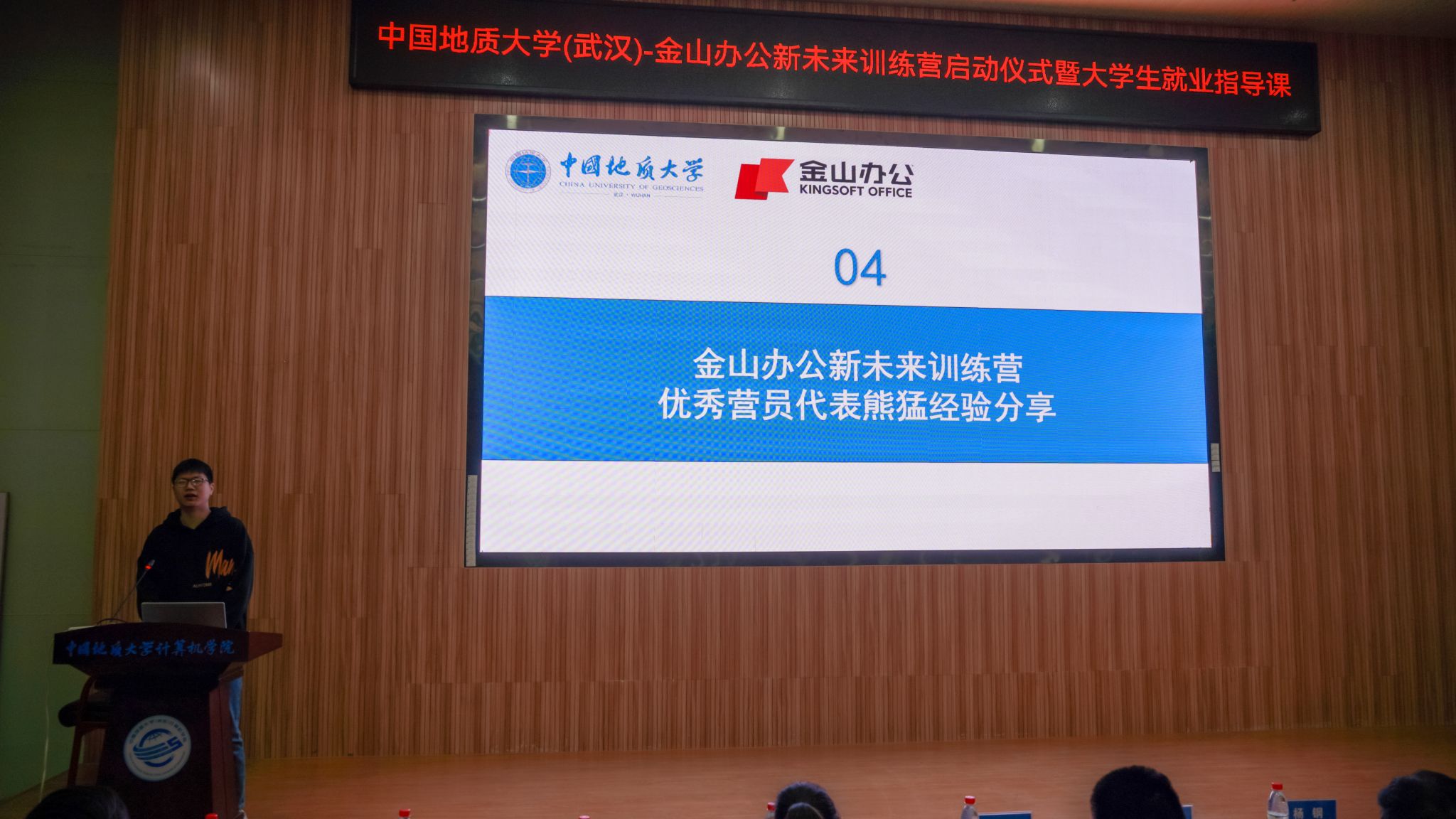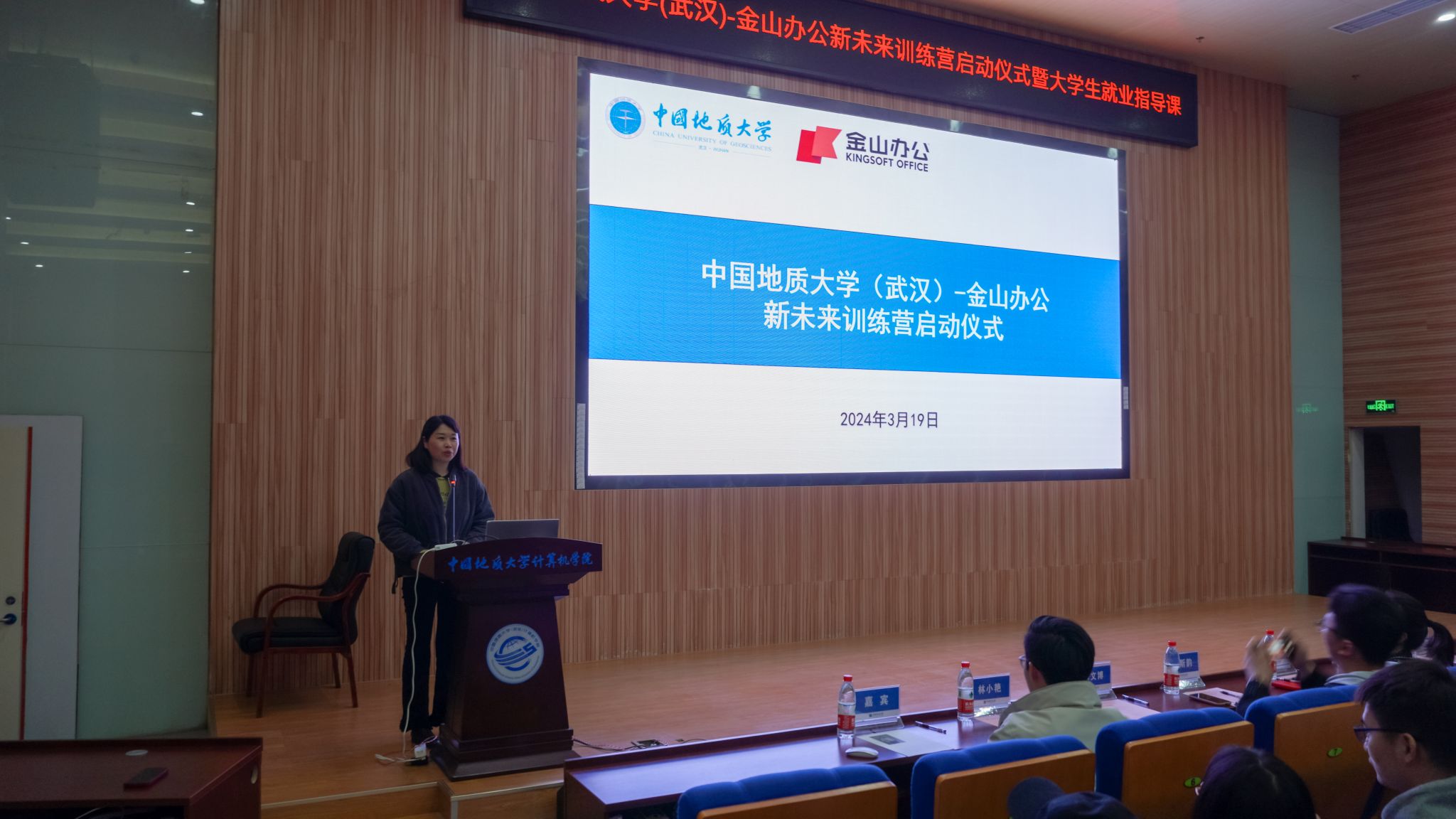 研究生代表张婉冰表示:“今天我有幸参加了金山办公与中国地质大学联合举办的“新未来训练营”的开营仪式及大学生就业指导课。我深感荣幸,并对金山办公团队表示衷心的感谢。这次训练营不仅为地大学子提供了一个学习和成长的平台,更是开启了我们与行业接轨的宝贵机会。通过就业指导课程,我能够更加清晰地规划自己的职业发展方向,为将来的就业奠定坚实的基础。我深信通过参加这次训练营,可以获得宝贵的学习经验和成长机会。让我们携手并进,共创美好未来。”