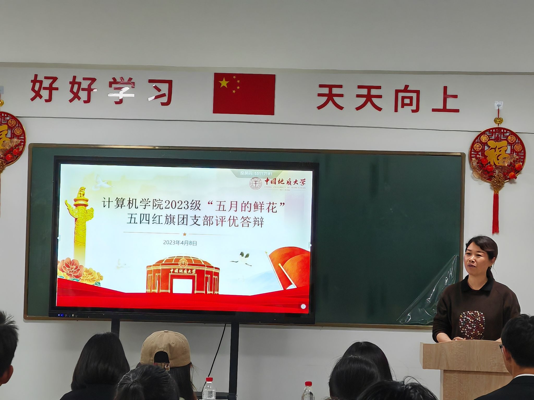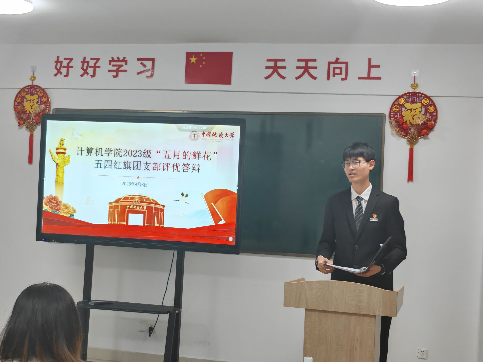 各支部结合专业特色与实际情况,从支部建设、支部活动、支部荣誉及未来展望等方面,充分展示了过去一年的工作成绩和支部风采,彰显了奋发向上、追求卓越的青春力量,呈现出一幅幅生动的团支部画卷。与此同时,现场的评委们也专心致志地对各团支部的答辩进行细心聆听并给予评议,针对各团支部的答辩情况进行提问与现场打分。