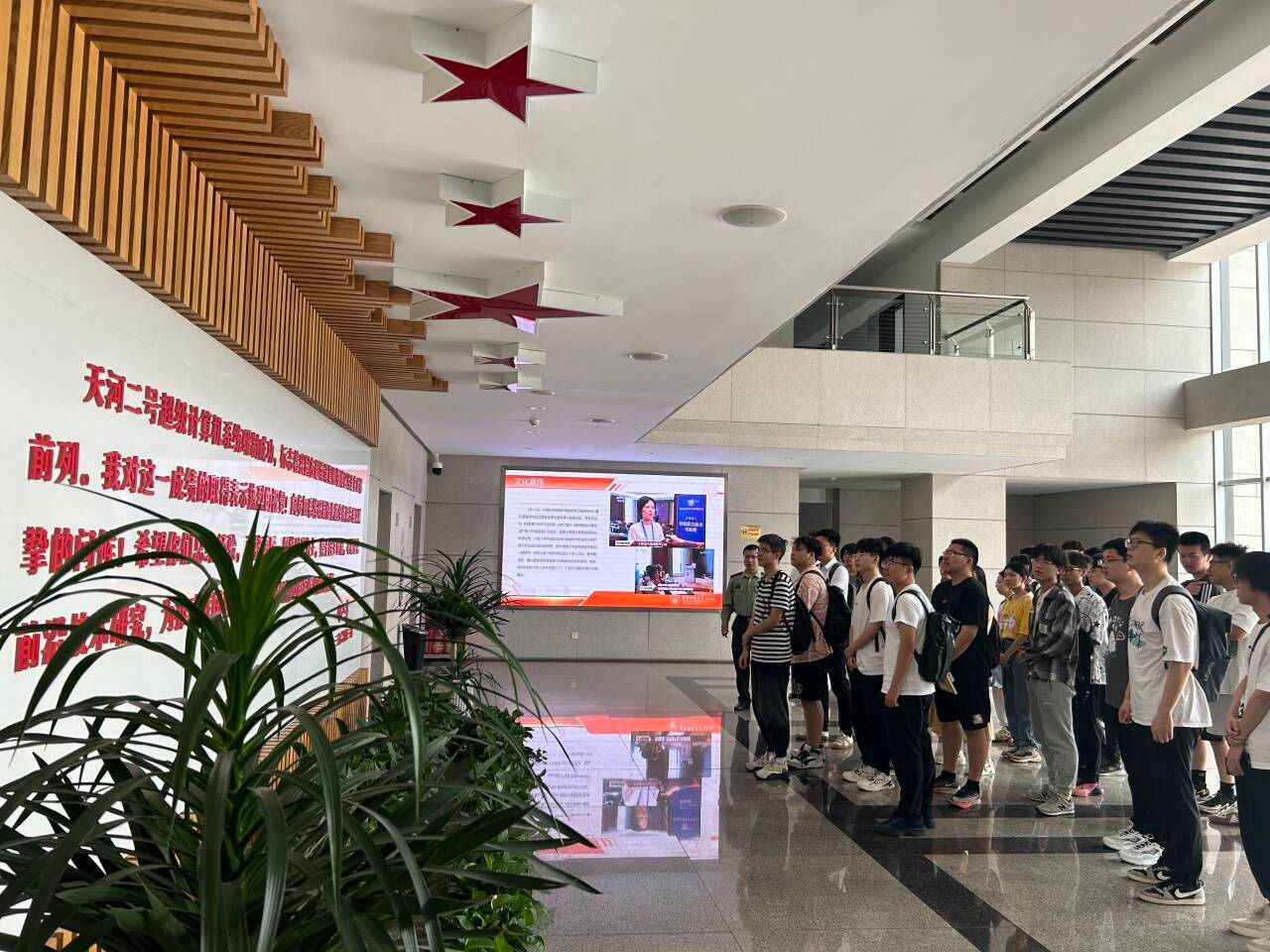 18日上午,国防科技大学贾孟涵老师对学院一行表示欢迎。随后一同参观国防科技大学世界杯体育官方网站院士墙和天河二号超级计算中心,介绍国防科技大学发展历程及重大成果。通过学习超级计算机的工作原理、应用场景以及国际地位,同学们对数据处理和计算机科学与技术的认识更加清晰,同学们纷纷表示将个人梦想融入到科技报国的伟大事业中。