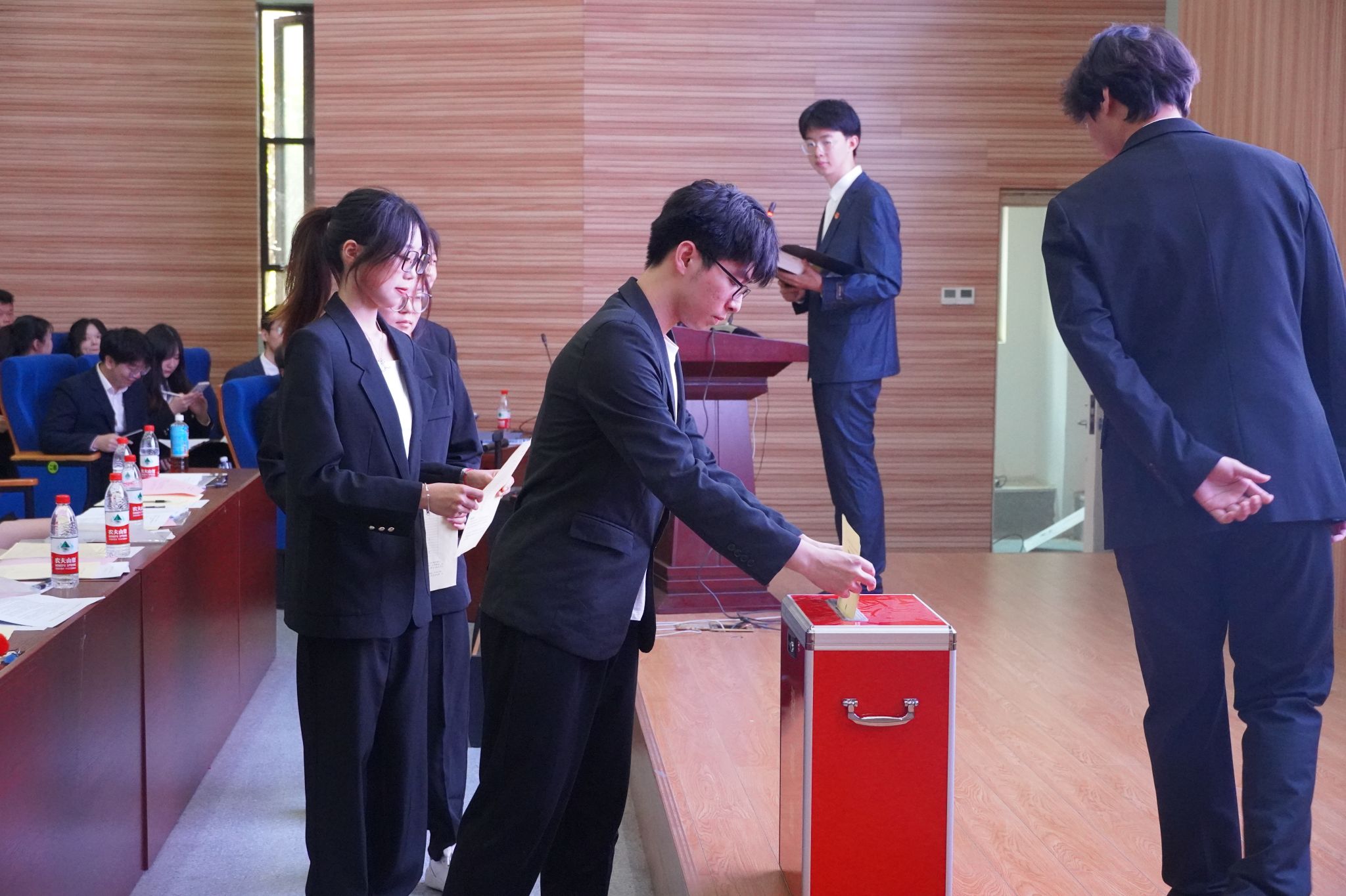2023届世界杯体育官方网站学生会主席团成员朱瑞东宣读《代表资格审查报告》和《候选人资格审查报告》。
