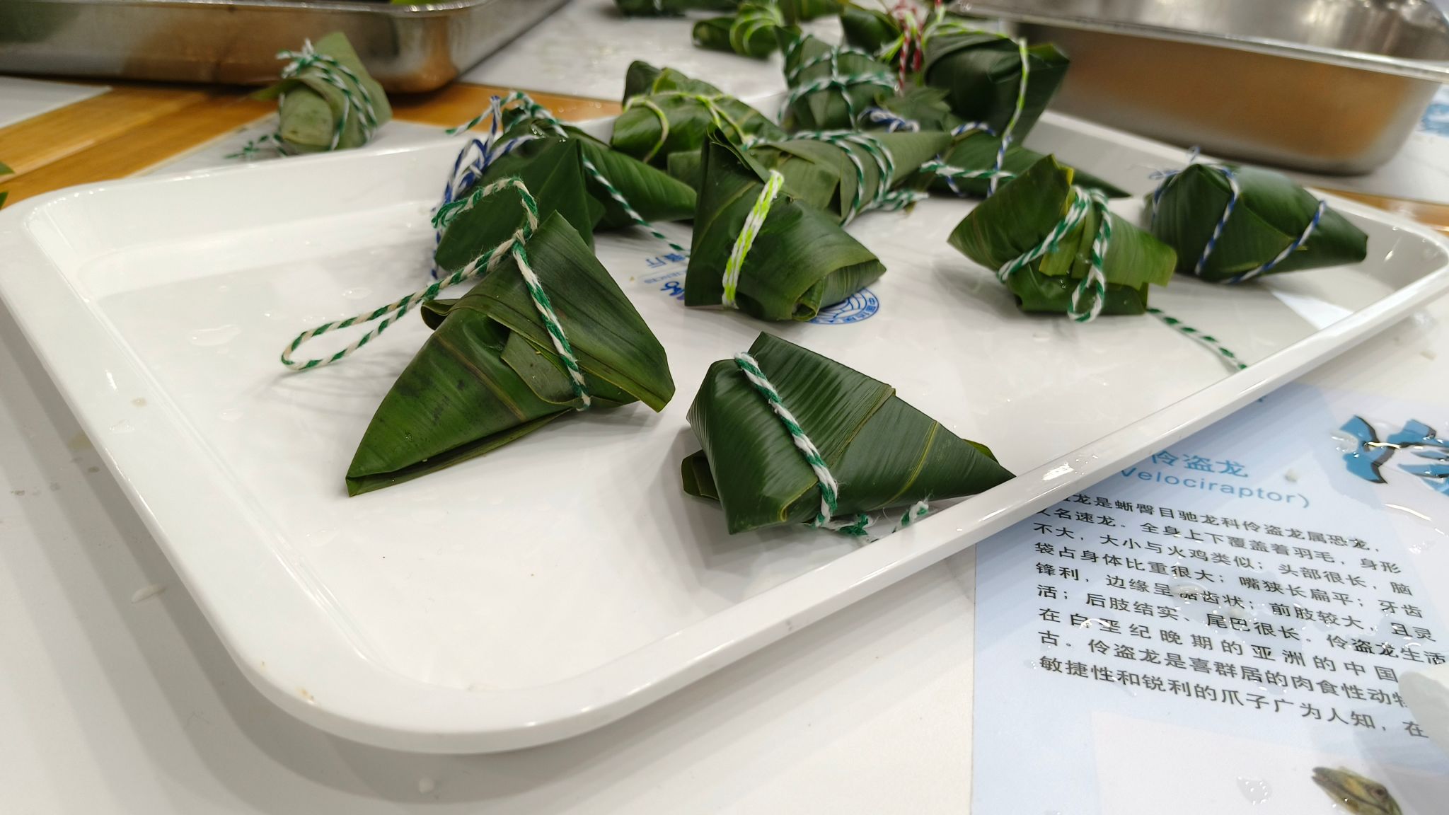 不一会的功夫,一片片清香的粽叶、一粒粒晶莹的糯米在一双双巧手下,转眼间就变成了一个个棱角分明的粽子,桌上的盘子被大小不一、绑法各异的粽子填满,传统文化也在大家的妙手中得以传承。同学们纷纷表,通过一起包粽子,相互交流,进一步增进了彼此的了解,加深了互相之间的感情;同时也感到了劳动的不易,在交流与努力中发现了劳动的乐趣。