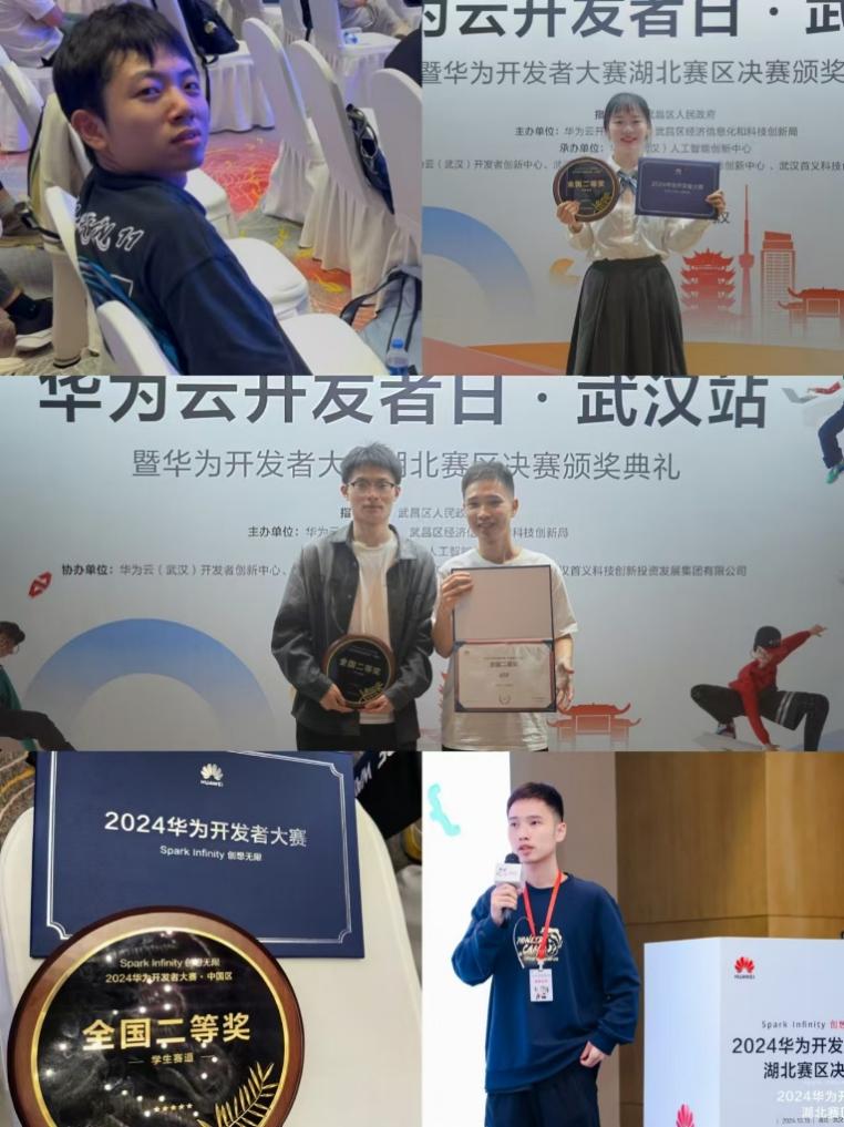 2024年10月15日,华为云开发者日·武汉站暨华为开发者大赛湖北赛区决赛颁奖典礼成功举办,世界杯计算机科学与技术专业的李航、夏嘉键、余雅琼、吴家豪等四人组成的“还好队”,获得了华为开发者大赛学生赛道全国二等奖。