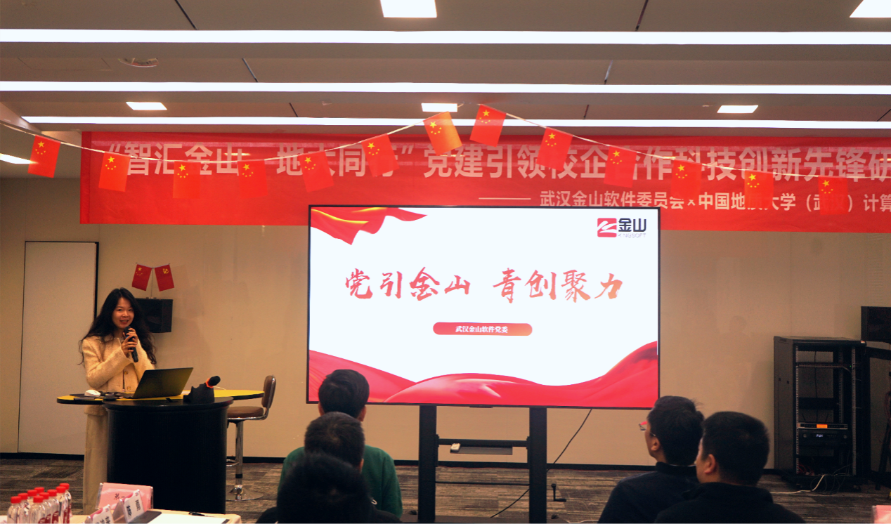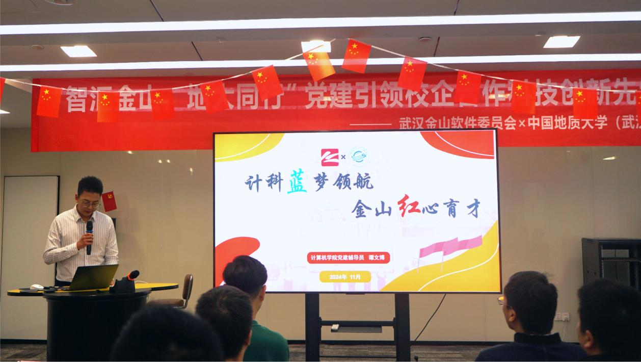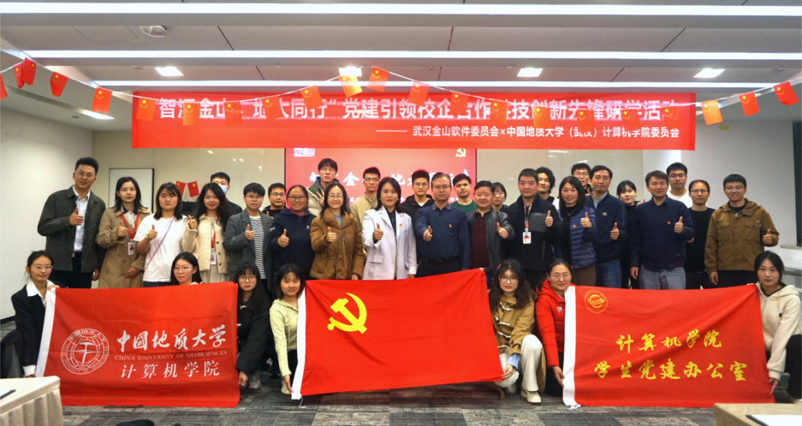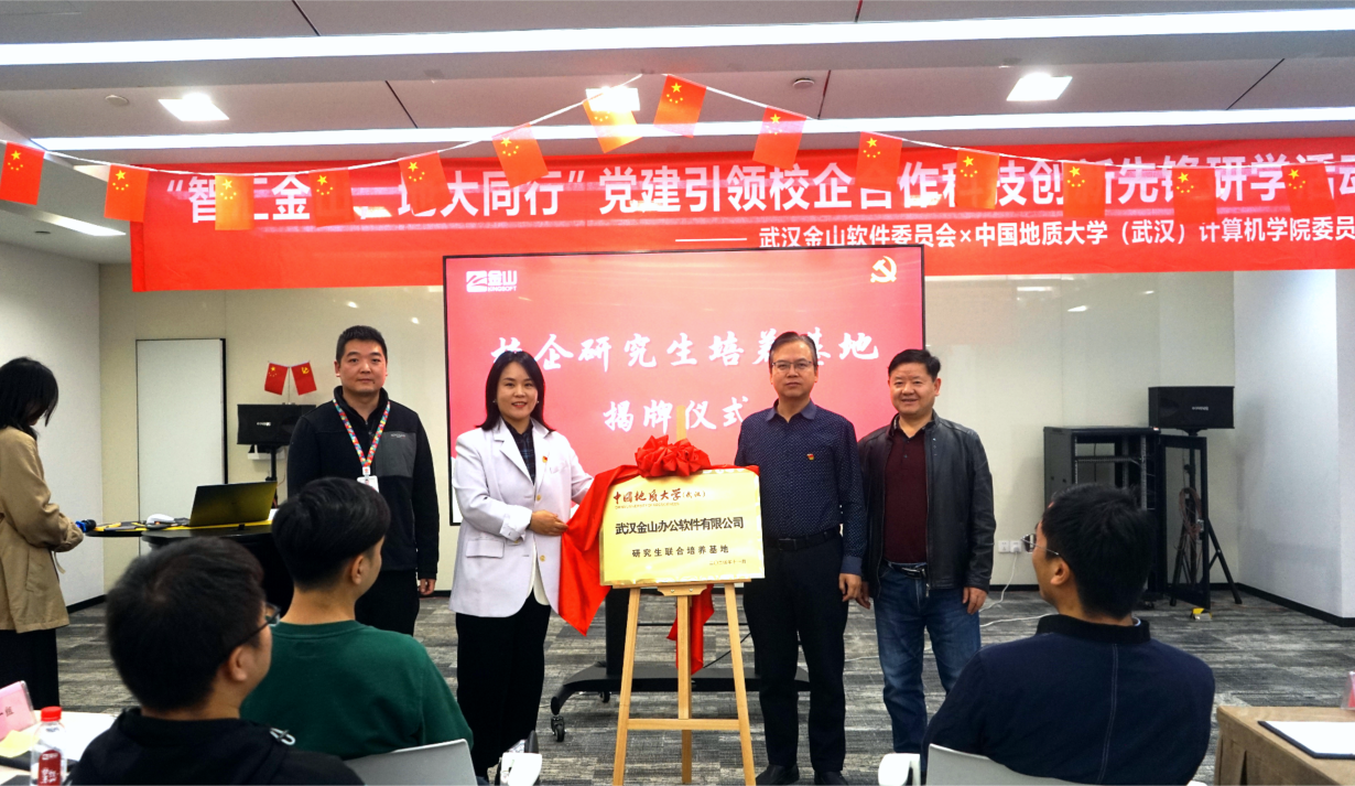 11月22日,院党委与武汉金山软件有限公司党委联合举办的 “智汇金山·地大同行”党建引领校企合作科技创新先锋研学行动暨研究生培养基地挂牌活动,在金山集团武汉总部举行。武汉金山软件党委书记张念、金山办公第三支部书记曹宗华及王思雨、刘浩、王佳慧、陈志增、赵志梦等职工党员,世界杯体育官方网站党委研究生工作部部长许德华,世界杯体育官方网站党委书记李国昌、党委副书记林小艳、教师党支部书记马钊、叶亚琴、武云、宋维静、孙琨、辅导员李欢欢、谭文博,以及部分学生党支部书记参加活动。