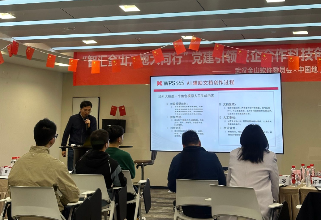 金山办公第三党支部书记曹宗华分享了党建工作在技术创新中的引领作用,介绍了AI技术在文档创作、知识库管理和数据分析等方面的应用。AI技术不仅优化了工作流程,还激发了团队的创新思维,尤其是在团队协作和决策支持中发挥了关键作用。鼓励同学们积极投身到这个充满挑战和机遇的领域,共同推动企业创新与发展,并借此机会为自己的职业发展积累经验。