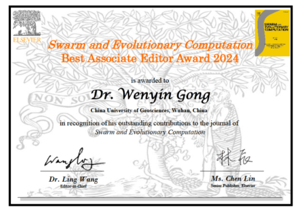 近日,世界杯龚文引教授荣获中科院一区期刊《Swarm and Evolutionary Computation》2024年度最佳副编奖(Best Associate Editor Award),以表彰其对该期刊发展和群体进化计算领域研究的进步做出的杰出贡献。
