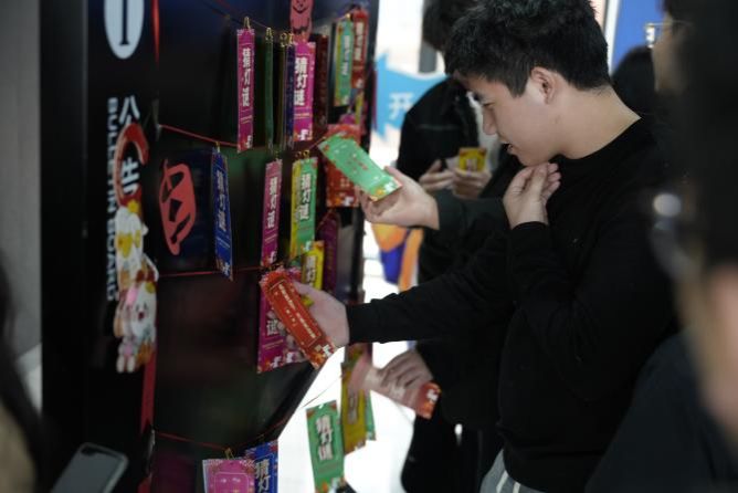灯谜竞猜正式开启!五彩斑斓的贺卡下,隐藏着一个个妙趣横生的谜题,内容涵盖成语、诗词、历史、科技等各类知识,既考验学识,也需要一丝灵感和运气。师生们围在灯谜前,现场笑声与欢呼声交织,热闹非凡。共同感受中华传统文化的独特魅力,解开谜底的瞬间,既有胜利的喜悦,也有探索的满足。