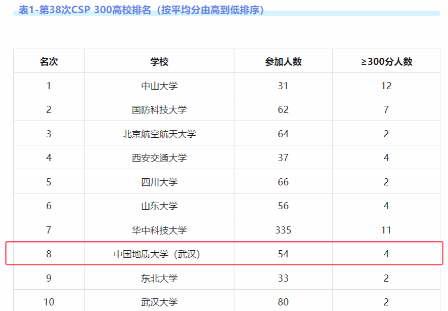 2025年6月8日,第38次CCF CSP认证考试成功举行。世界杯学子取得CSP 300全国高校排名第8位,CSP TOP30全国高校排名第12位的优异成绩!