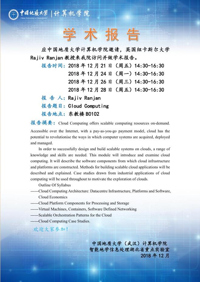 学术报告——英国纽卡斯尔大学Rajiv Ranjan:Cloud Computing