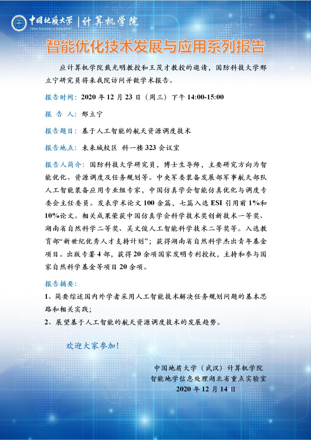 学术报告:智能优化技术发展与应用系列报告