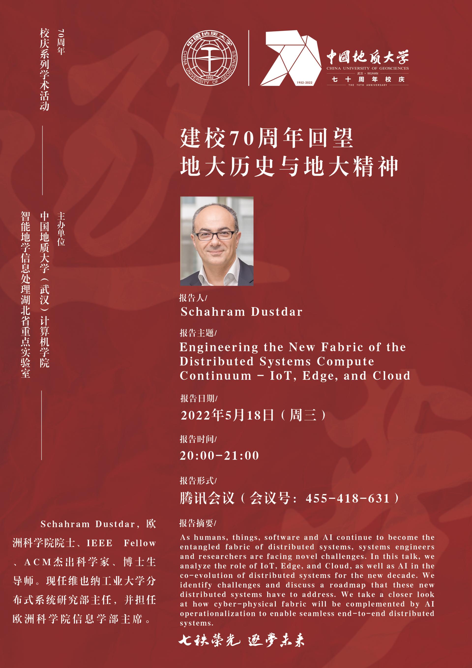 学术报告——奥地利维也纳工业大学Schahram Dustdar教授:Engineering the New Fabric of the Distributed Systems Compute Continuum—Iot,Edge,and Cloud