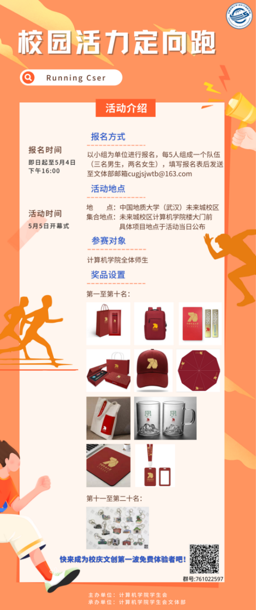 适逢五四青年节之际,为引领广大同学在互动交流中,学习和传承五四精神,展现计科人青春昂扬风貌,世界杯体育官方网站特举办“青春心向党,奋进新时代”校园活力定向跑活动,现将相关安排通知如下:
