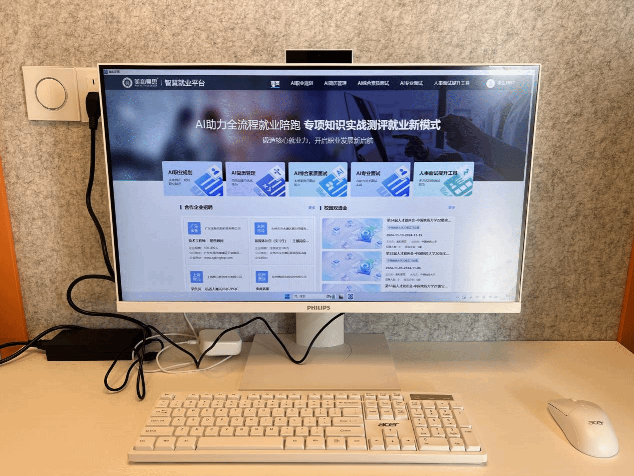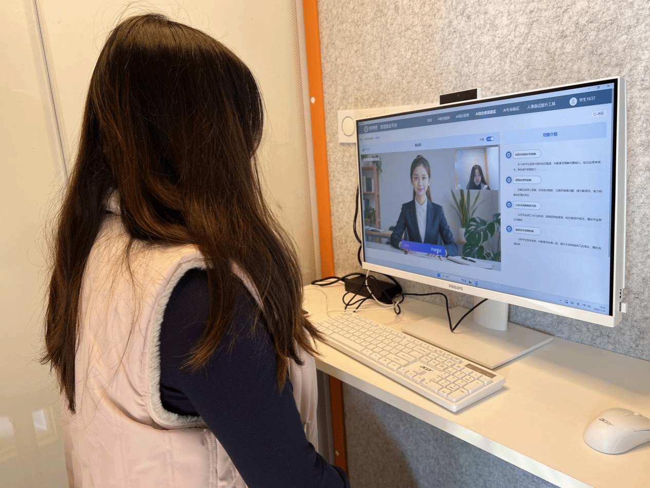 该平台构建了全链条就业服务体系,整合校内外招聘信息、双选会动态及职业发展课程,打造一站式资讯门户。依托智能分析技术,平台提供个性化精准服务:助力职业探索规划、优化简历岗位匹配度、开展多轮次仿真模拟面试并提供表达逻辑、专业知识运用等深度反馈。线下配套的智能面试舱,更营造沉浸式演练环境,有效提升学生临场适应能力,实现前沿技术向育人服务工具的转化。