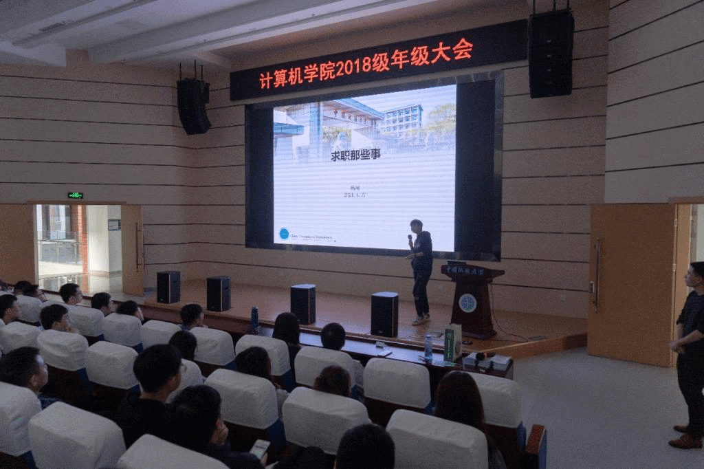 接着2017级的三位学长学姐为大家做考研就业指导分享。网工专业的杨雯绚从学硕的角度指导大家如何准备和应对考研,从准备考研的不同阶段提出建议;计科专业的郭兴从专硕角度分享了自己的经历和认识,谈到了学硕与专硕的区别,强调做好时间规划,考研就业也可以不冲突;计科学长杨周从就业角度分享自己的经验,他从做简历到投递简历再到笔试面试的就业过程详细为大家进行讲解,告诉同学们要认清自己究竟是否适合考研,考研与求职并不是对立存在的。