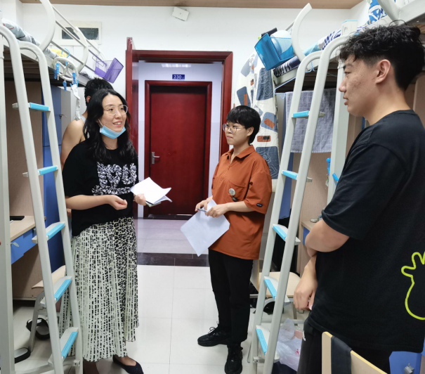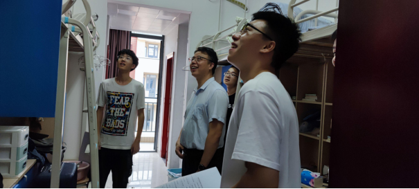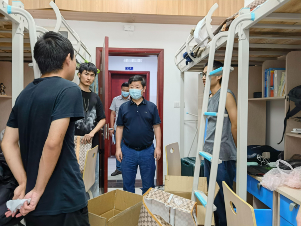 下午, 学院党委书记李国昌、副院长张冬梅、副书记傅苑、副院长胡成玉、团委书记李欢欢及办公室主任石剑峰、院直支部书记黄燕霞、学工组全体辅导员以及教务科老师前往宿舍看望走访学生宿舍,为同学们送去问候和关怀,叮嘱同学们要在新的生活环境中努力学习,奋发有为。