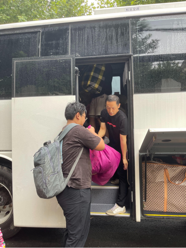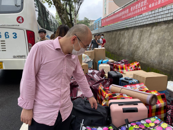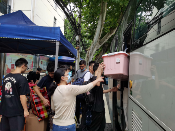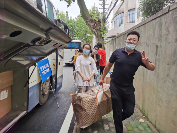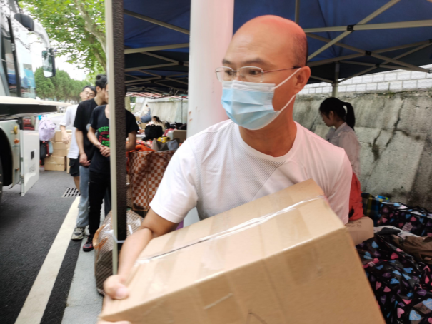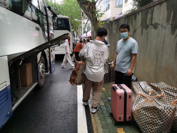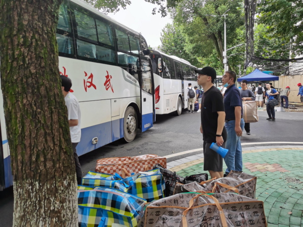 到场的负责的班主任、辅导员老师们组织学生有序进行搬迁。令人感动的是,各班班主任上午6点就提前到达乘车点,维持现场秩序,并积极地帮助学生搬运行李,很快完成了装车,顺利驶向未来城校区;