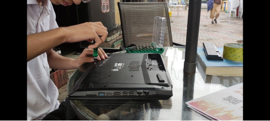 下午,张贴宣传海报、检查维修工具、核对应急资料,一切准备就绪,志愿活动正式开始。活动过程中,“筑梦E路人”团队成员一边给前来寻求帮助的居民进行电脑维护,一边进行电脑软件和硬件相关知识的科普。对于电脑常见故障,志愿者们动作利索地拆解机箱开始维修,还跟居民讲解简单的自检方法及解决的办法;对于系统反应慢,文件打不开的,大学生们为他们安装了360系统优化;对于电脑容易死机重启的,为他们重装了系统;对于一些年纪较大不是很懂电脑的居民,则帮他们的电脑杀了毒,安装了一些快捷方式以便于他们以后方便使用。实际操作配合专业知识讲解,轻松愉悦的氛围吸引了20多位居民排队咨询,在社区取得了良好的反响。