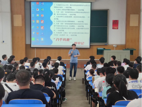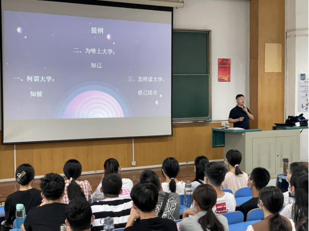 院党委副书记傅苑做题为《带你走进大学》的新生教育课,从学院介绍、大学学习的转变、就业与发展以及学业管理四个方面展开,介绍了学院如何助力学生多维度成长,总结了大学阶段学习的特点,为在座的各位新生打开了洞见未来的窗口。她强调,步入大学要为自己制定详细可行的学习目标,养成独立自主,多思善问的学习习惯,改变“到大学就轻松了”的错误想法。最后,她寄语全体新生,希望在座的各位能够成为积极向上,励志有为的新时代青年。