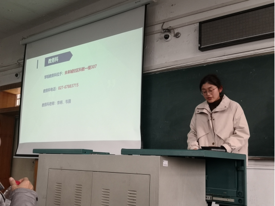 接着,学院教务科秘书、学工组全体老师分别从教务工作、世界杯体育官方网站概况、党建工作、心理健康教育工作、学生综合素质能力提升系列活动做详细介绍。