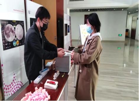 再来看看我们的礼品发放区~桌上的粉色玩偶,精美书签都是学院满满的关爱。我们不仅收获了同学们的甜美笑容,还收获了学院老师的现场点赞