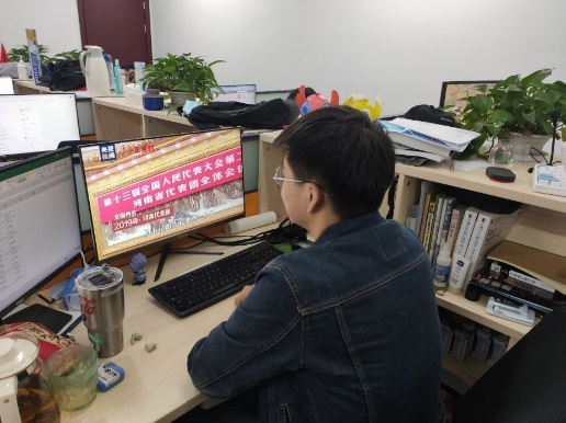2019级硕士研究生第一党支部党员宋志权谈到:为深入学习领会此次会议精神,把握新时代奋进的信息,我在第一时间通过电脑准时收看“两会”盛况。很多政协委员都提出了很有用的建议,其中全国政协委员贺丹的“农村也应有生育保险,农村建立生育保险制度”建议让我印象最深刻。听着两会上很多很有意义的建议,我自己的社会认知、政治认知得到进一步的提升,也让我更加明确了国家总体愿景和使命。