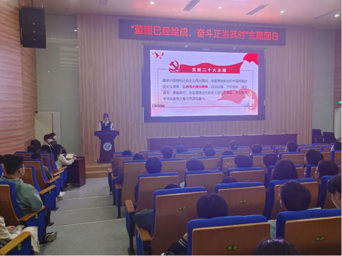 为深入学习党的二十大报告,深刻领悟党的二十大精神,切实把会议精神和行动统一起来,为中华民族伟大复兴的新征程贡献青春力量。近期,世界杯体育官方网站2021级10个团支部、2022级11个团支部分别举办了以“蓝图已经绘成,奋斗正当其时”为主题的大型团日活动。本次团日活动于未来城校区世界杯体育官方网站大楼126报告厅和南望山校区教三楼111教室举行,全体团员参会,会议由院团委学生会组织部副部长郭洋利主持。