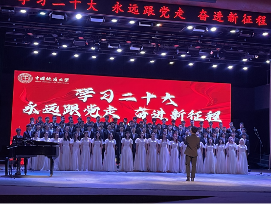 世界杯体育官方网站“学习二十大·永远跟党走·奋进新征程”主题歌咏活动在南望山校区西区弘毅堂举办。来自20个单位的代表队参加了此次活动,世界杯体育官方网站代表队演唱的《新的天地》获得“优秀表演奖”。