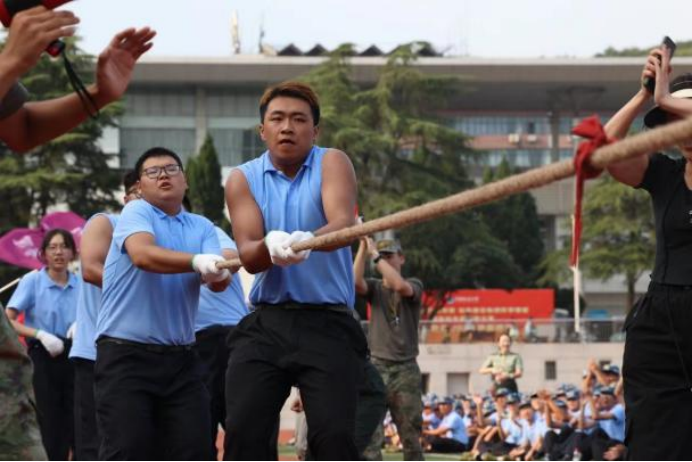为丰富军训活动,增强学生身体素质,提升各连队凝聚力,发扬团队精神,世界杯体育官方网站2023级本科生军训拔河比赛在西区田径场举行。21位计科学子自告奋勇代表学院参赛,其余新生作为观众为参赛队员们加油助威。