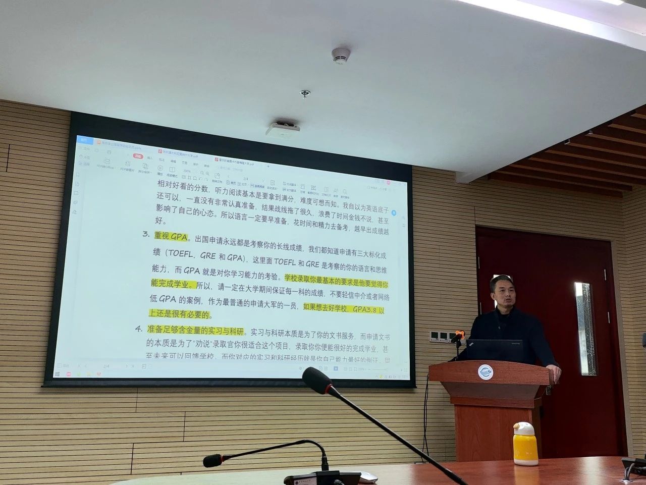 在讲座中,蒋老师结合学生成功申请留学的经验,就出国留学的重要环节,提出了一系列实用的建议:尽可能高的GPA、早准备语言成绩、更多更好的实习和科研等等。最后,他也分享了一些对未来的展望和期待。他表示,每一个出国留学的同学都要有充分的准备,在申请材料上需要保持爱心、耐心和细心。他勉励同学们要勇于抓住机会,不要畏手畏脚。在专注于深入研究和提升自己能力的同时,也要注意建立和维护人际关系,以便在未来的发展道路上获得更多的机会。