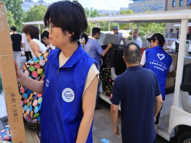 同学们提前将个人行李打包、整理完毕,早早在楼下集合,随着搬运车辆陆续到达,大家自发排队、协作配合,将纸箱、背包等一一传递上班车,摆放得井井有条。虽然天气闷热,但在老师们的带领下,同学们干劲十足,整个搬迁现场忙而不乱,秩序井然。