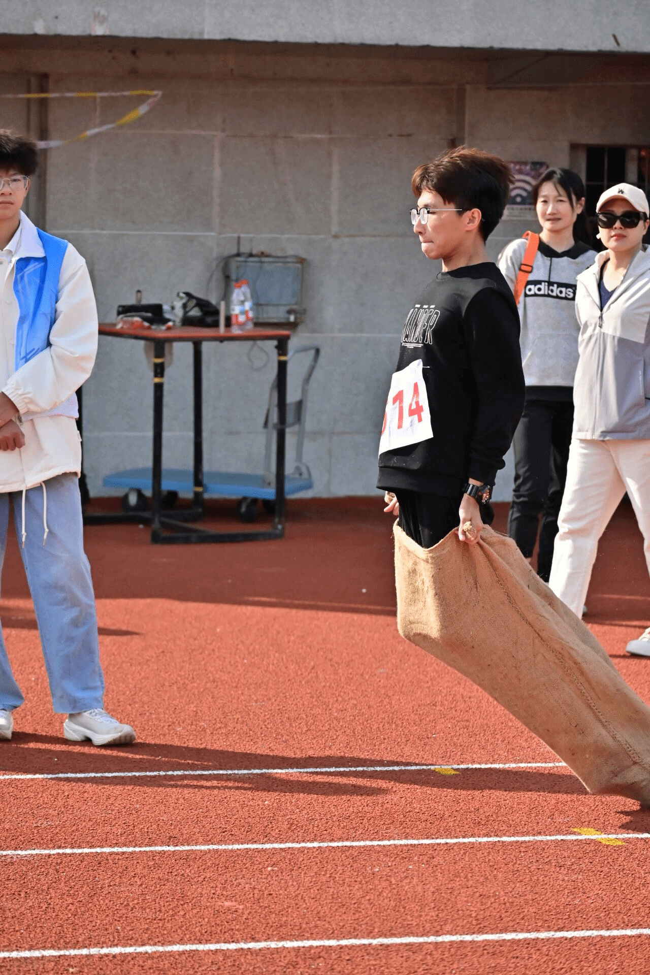 趣味项目带来了阵阵欢笑,在排球掷准赛场,李姝璇、向盼盼、苏圣涵、彭磊、张傲阳、夏步旺组成的队伍全神贯注,每一次投掷都划出精准弧线,他们凭借强劲的实力夺得亚军。张佳乐、田礼阳、张璐、王奕、秦子瞻、魏作敏、魏松洋、孙艺、郑思豪组成的队伍在快速奔跑与精准交接中,展现了团队的凝聚力与活力,最终获得50米往返接力赛第七名。姜宇、陈泽西套上编织袋,化身为跳跃的“袋鼠”精灵,在轻松愉快的氛围中展现了别样的运动风采。足球射门项目同样精彩,杨谨源、梅桂萱、戴舜霆、周沛琦、曲浩文、孟阿荣组成的队伍目光专注,每一次射门都凝聚着力量与技巧,展现了团队的即时协作与拼搏精神。集体跳绳项目中,王紫研、张瑀萱、魏松洋、孙艺、黄承逸、孙端岳、唐乐轩组成的队伍配合默契,长绳飞舞间,队员们如音符般跳跃,用整齐的节奏谱写了一曲活力四射的运动乐章。