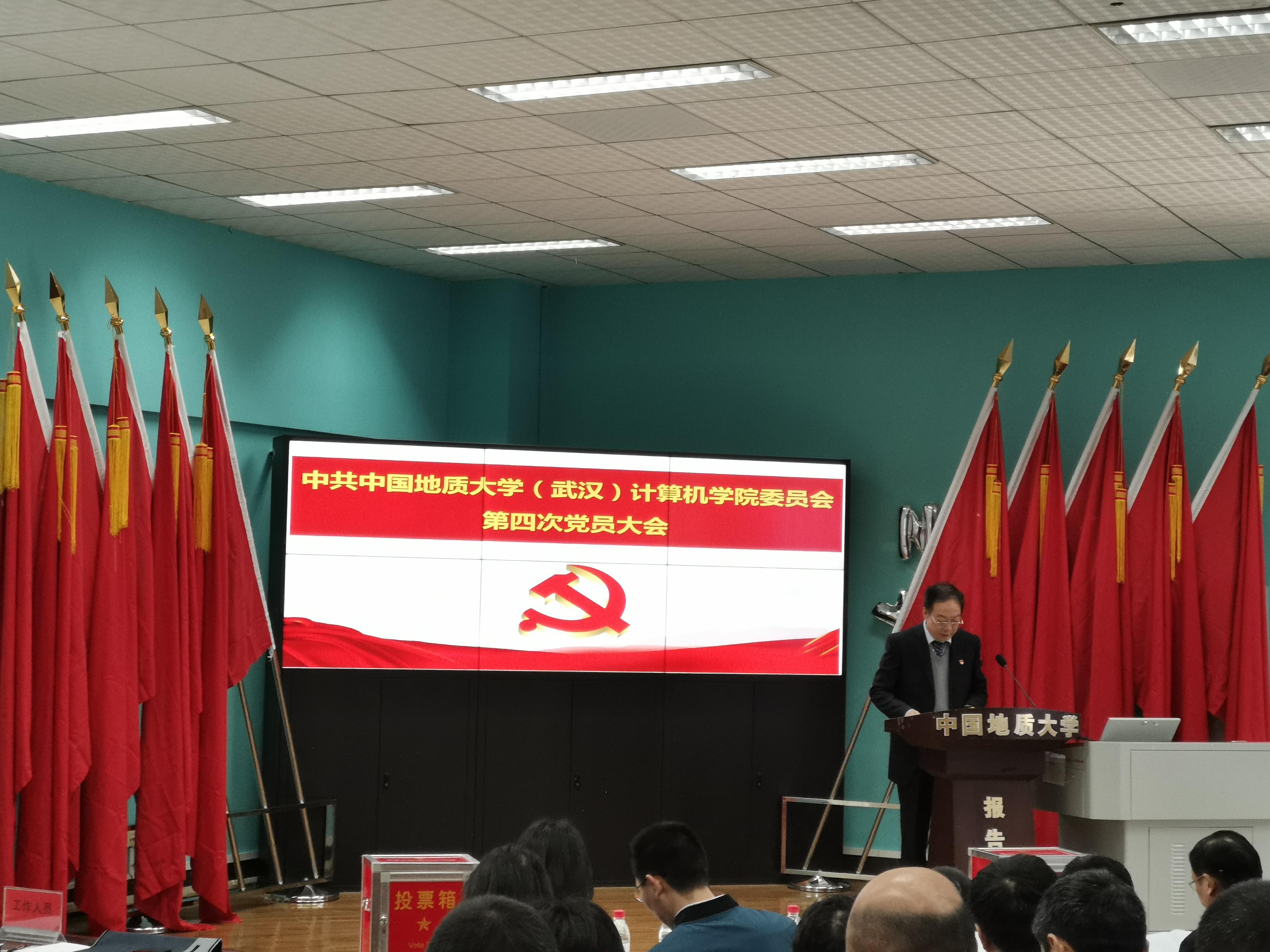 4月11日,世界杯体育官方网站党委第四次党员大会在北一楼报告厅隆重召开。校党委副书记、纪委书记成金华同志,校党委组织部副部长冷再心同志出席会议。本次会议由党委副书记傅苑同志主持。