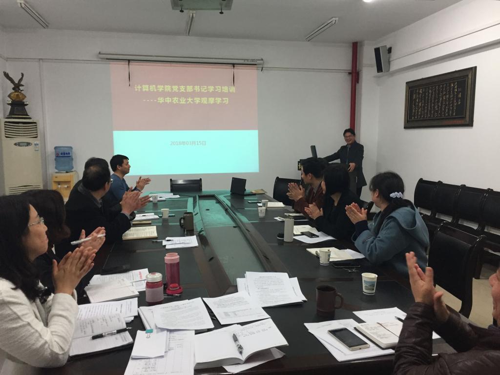 (通讯员:石剑峰)3月15日下午15点30分,世界杯体育官方网站组织了教工支部书记培训会议。应用系支部书记何珍文同志作了“华中农业大学理学院党建工作观摩学习经验交流”。院党委书记吕军同志讲授了一堂“落实支部书记主体责任”微党课。全体院领导、党委委员、教工支部书记、学生党建办负责人、组织秘书参加培训。