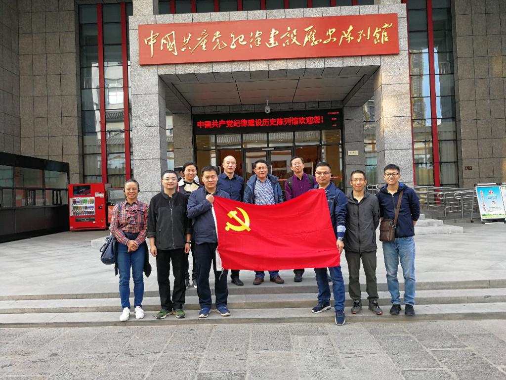 支部党员在中国共产党纪律建设历史陈列馆前合影