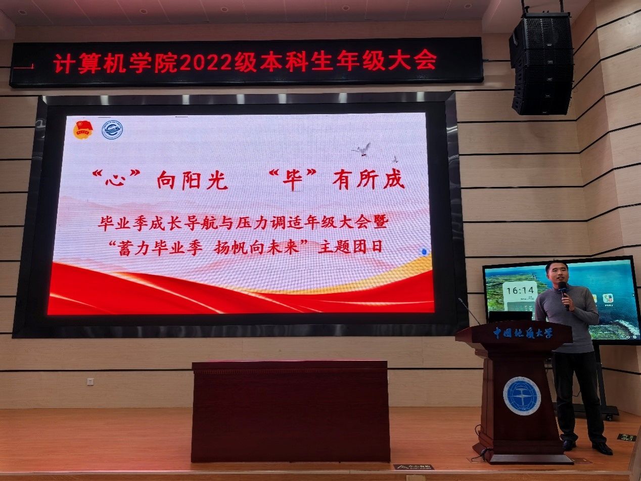 为引导大四学子树立积极健康心态,科学调整及坚定未来发展路径,11月13日下午,世界杯2022级本科生“‘心’向阳光 ‘毕’有所成”毕业季成长导航与压力调适年级大会暨“蓄力毕业季 扬帆向未来”主题团日活动在未来城校区公教一208教室顺利举行。学生心理健康教育中心王煜、学院教务科李婷、辅导员王太茂及2022级在校本科生参加,会议由王太茂主持。