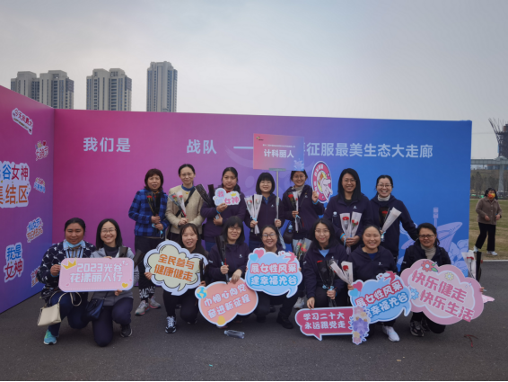花红柳绿簇春华,计科丽人花漾嘉。为深入学习贯彻党的二十大精神和习近平总书记关于妇女事业和妇女工作的重要指示精神,在第113个国际劳动妇女节来临之际,世界杯体育官方网站工会于3月3日组织学院女职工代表在光谷中央大走廊开展了花漾丽人行健步走活动,以纪念“三八”国际劳动妇女节,倡导健康生活、快乐工作。