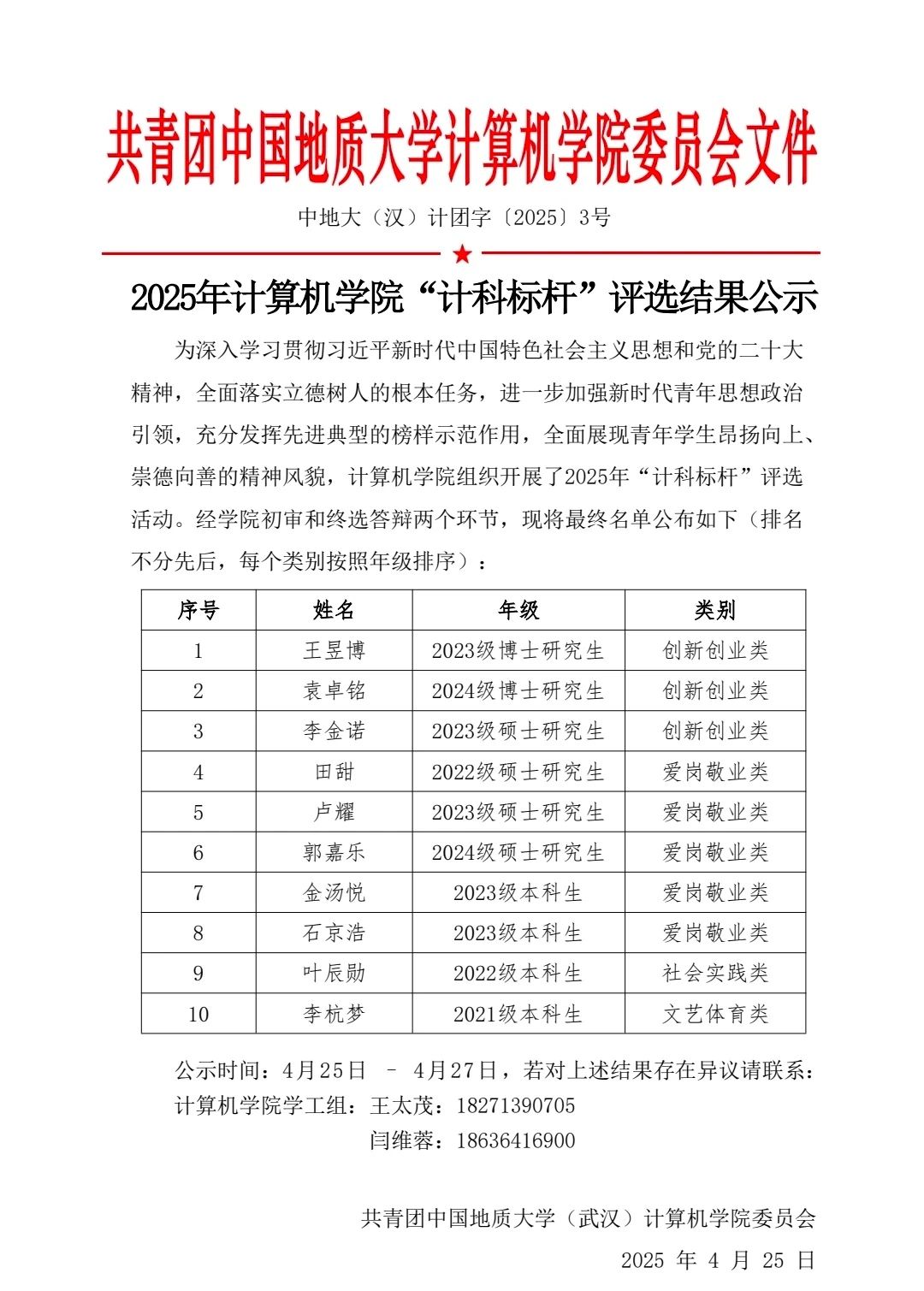 2025年世界杯体育官方网站“计科标杆”评选结果公示