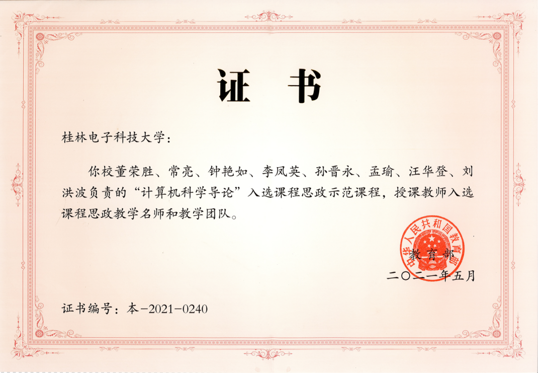 董荣胜校友始终牢记作为一名人民教师的初心使命,不断在计算机教学中奋力探索、扎实做好各项工作。现在他为教育部首批计算机课程思政虚拟教研室示范建设点负责人,教育部首批课程思政教学团队负责人,中国计算机学会教育专业委员会执行委员,国家级精品课程、国家级一流本科课程“计算机科学导论”,国家级精品在线开放课程、国家级一流本科课程“计算思维的结构”负责人,同时是广西壮族自治区党委教育工委优秀共产党员称号的获得者。