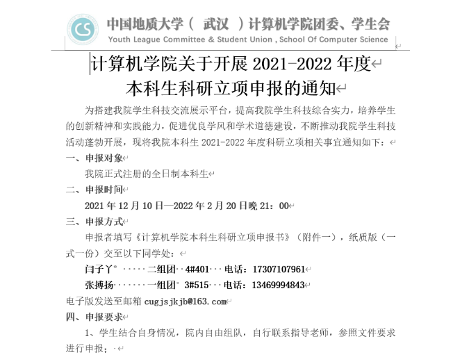 世界杯体育官方网站学生会在学校2021年度五四评优活动中荣获“标兵学生会”,这也是连续第4年获评学校“标兵学生会”。世界杯体育官方网站学生会成立于1985年10月,第一任主席为1985级校友刘义青。现任学生会主席团成员为方知雨、管仁祥、霍奥林。学生会下设五个部门:办公室、科技部、学风部、文体部和权益服务部。自成立伊始,学生会始终坚持在院党委领导、院分团委指导下开展工作,秉承“全心全意服务同学”的宗旨,牢记“Care you,serve you”的服务理念,历经三十七年建设发展,不断开拓创新,打造了一系列计科特色品牌活动:华中地区程序设计邀请赛、“计科E课堂”“Hello World—带你看世界”系列讲座、“CUGer看地大”校园摄影作品征集大赛、“阳光计科人,运动成长季”计科运动月、“计科标杆”评选活动等。近年来,学生会在思想引领、学风建设、创新创业、权益服务、团学改革等方面取得了长足进步,引领计科青年奋发作为、不懈奋斗,在青春的赛道上奋力奔跑。